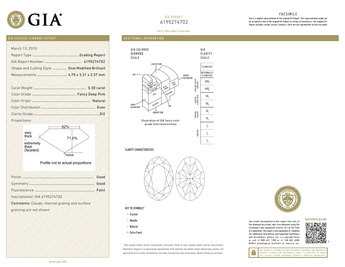 0.30CT, Natural Fancy Deep Pink, SI2 Clarity, Oval Shape, GIA