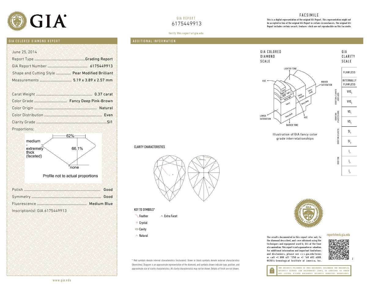 0.37CT, Natural Fancy Deep Pink-Brown, SI1 Clarity, Pear Shape, GIA