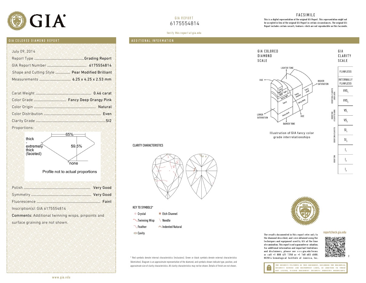 0.46CT, Natural Fancy Orangy Pink, SI2 Clarity, Pear Shape, GIA